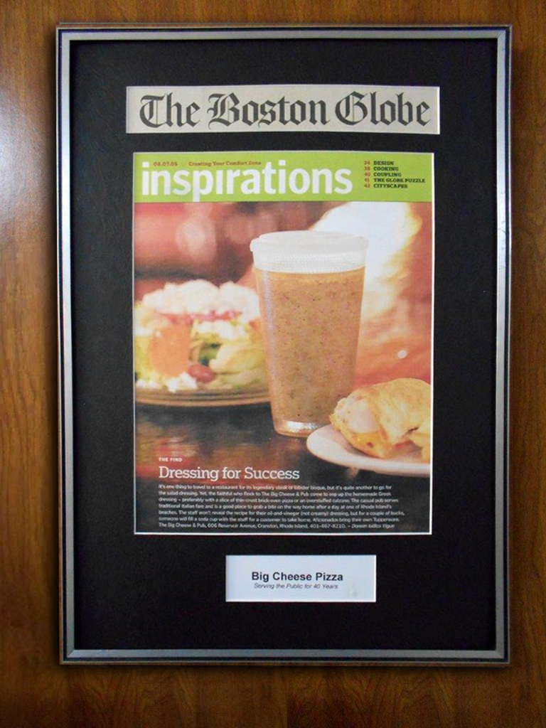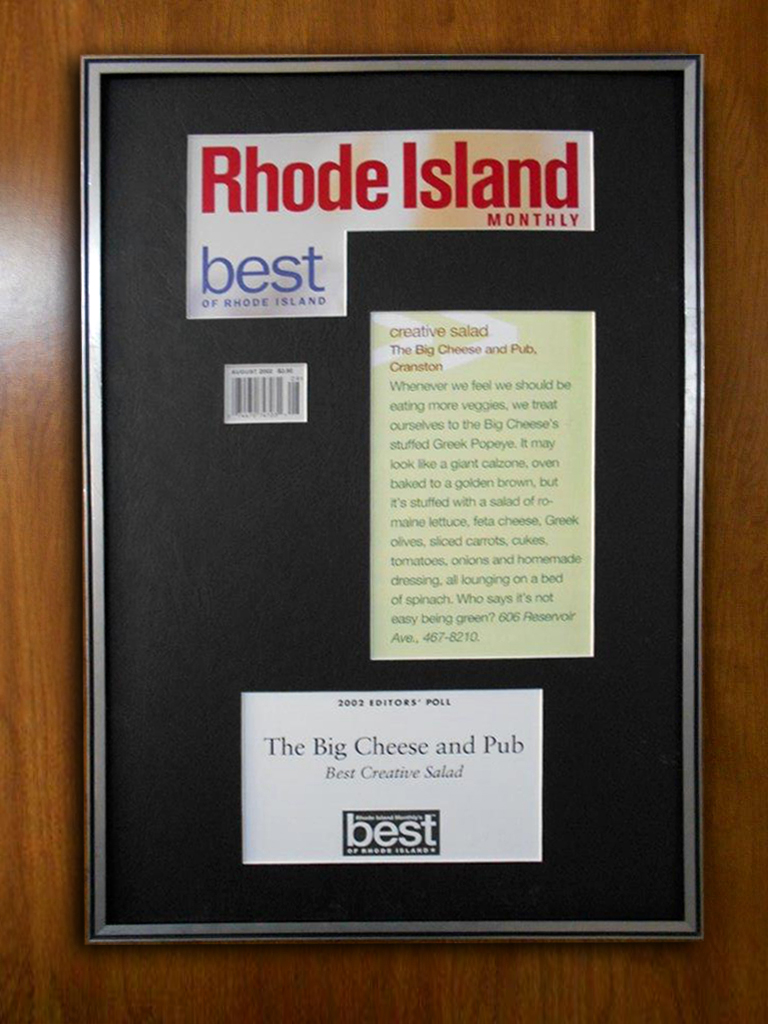 Was recommended to try big cheese by many native Cranston people and wow was I impressed. The salads are huge and the dressing is to die for. Got an eggplant calzone made with homemade wheat crust that was out of this world. Not your average pizza joint. Highly recommended.